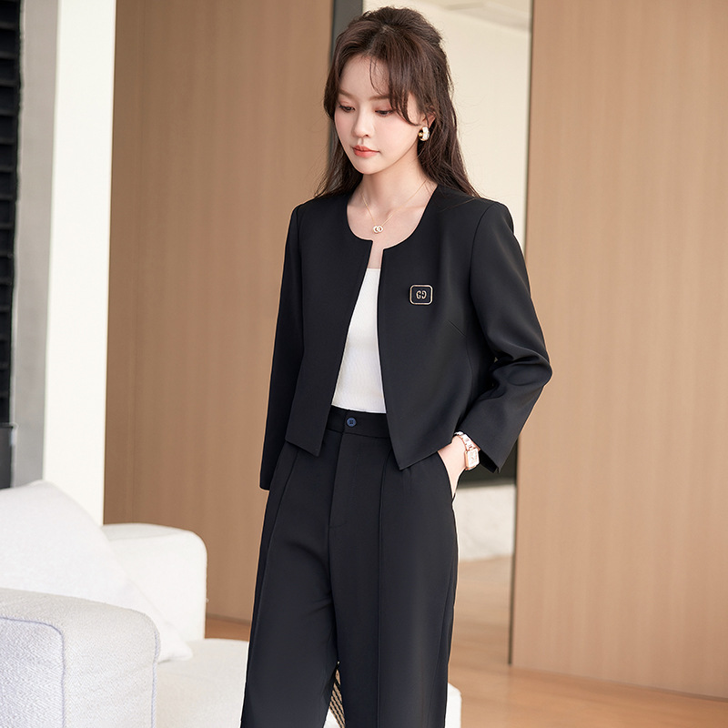 عارضة بيضاء قصيرة البدلة سترة المرأة شعور عالية مزاجه الربيع والخريف الصغيرة المهنية واسعة الساق السراويل البدلة