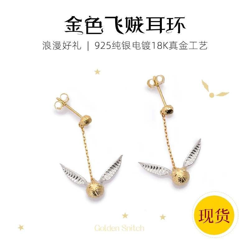 أقراط هاري بوتر جولدن سنيتش من الفضة الإسترليني وأقراط مطلية بالذهب ومشابك الأذن مجوهرات هدايا صغيرة ورائعة للصديقات