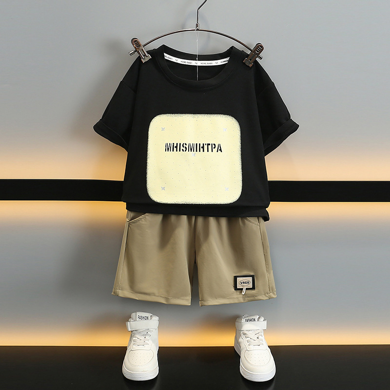 بدلة صيفية للأولاد 2024 طقم صيفي جديد على الطراز الكوري عصري للأطفال مكون من قطعتين