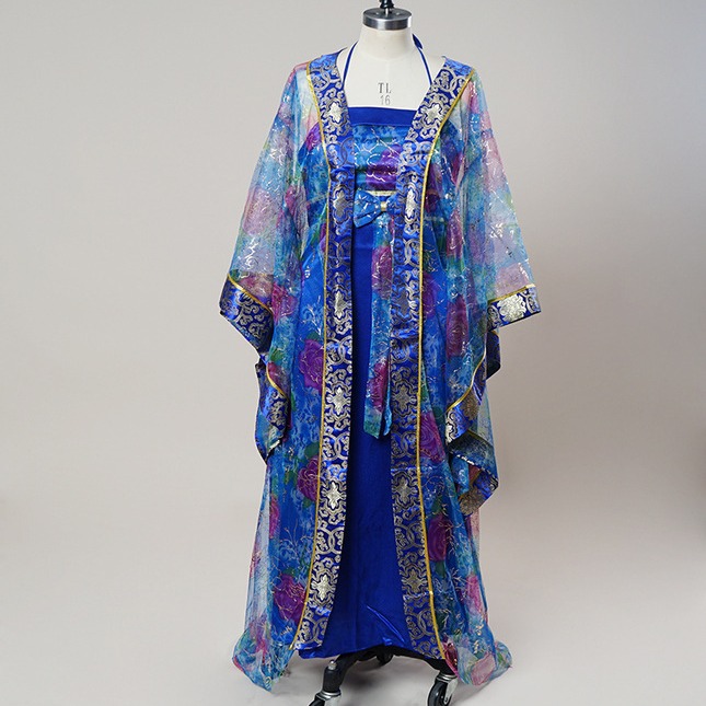 الصينية الكلاسيكية الأزرق الدانتيل تول هانفو زي الفيلم القديم والتلفزيون مرحلة زي فستان تنورة المرأة