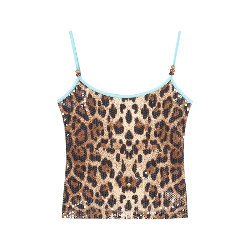 فتاة مثيرة بطبعة جلد الفهد، مقاس نحيف، تصميم بألوان متباينة، لباس خارجي مزين بالترتر