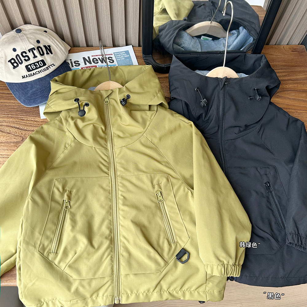 معطف بقلنسوة على الطراز الكوري للأطفال على الطراز الأجنبي سترة واقية بسحّاب قابلة للتنفس للربيع والخريف ملابس أطفال للأولاد رقيقة