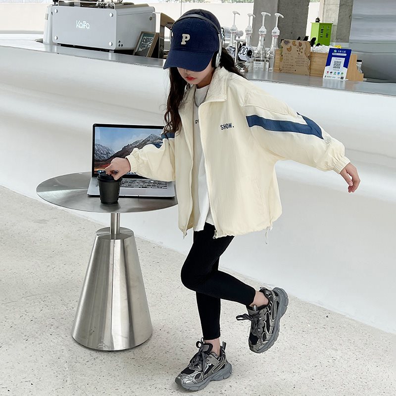 الفتيات ربيع 2024 نمط جديد عصري كبير للأطفال أوائل الربيع معطف الربيع والخريف الأطفال الاندفاع الملابس سترة علوية
