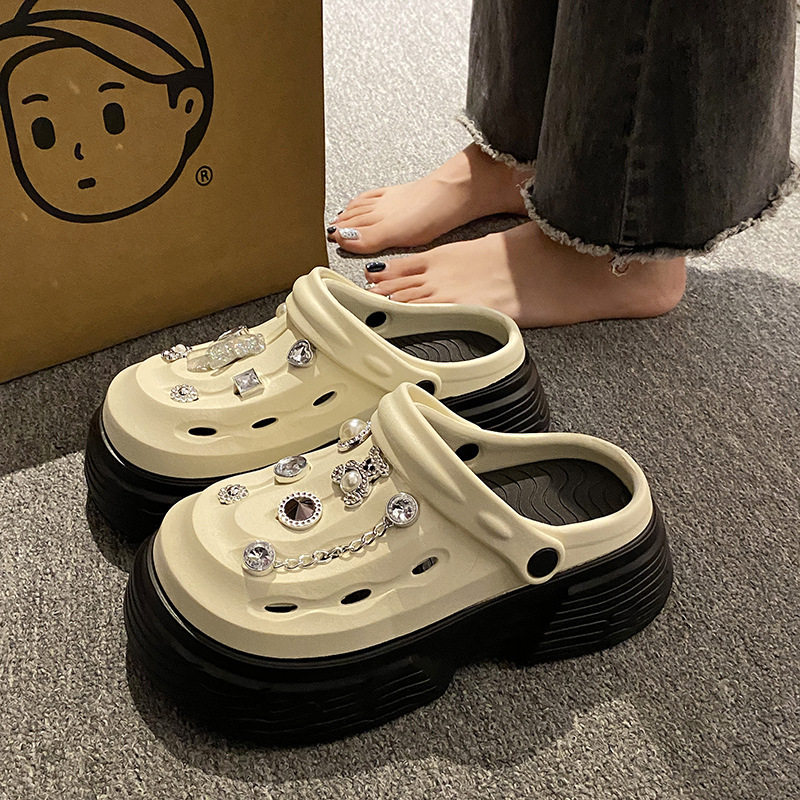 نعال باوتو سميكة النعل للنساء لصيف 2024 أحذية بفتحات بتصميم جديد في اتجاهين صنادل شاطئ البحر سهلة الارتداء