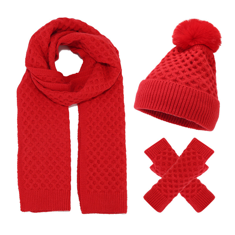قبعة وشاح نسائية أوروبية وأمريكية محبوكة مكونة من ثلاث قطع للخريف والشتاء قبعة صوف جديدة مقاومة للبرد ومبطنة بالصوف على شكل أناناس