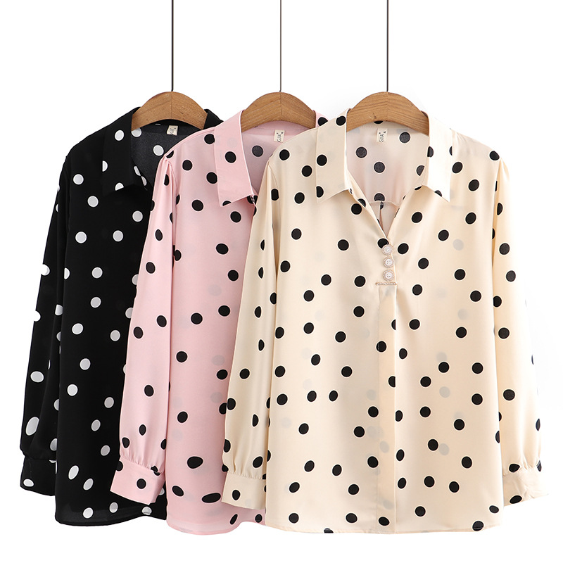B1 ملابس نسائية كبيرة الحجم للربيع على الطراز الكوري قميص مطبوع فضفاض بأكمام طويلة من الشيفون قميص مناسب لكل مباراة A052