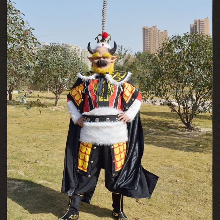 رحلة الكبار إلى الغرب رحلة جديدة إلى الغرب العظيم الثور الشيطان مشاهدة الأداء زي الدعائم قناع غطاء الرأس الأحذية سكين