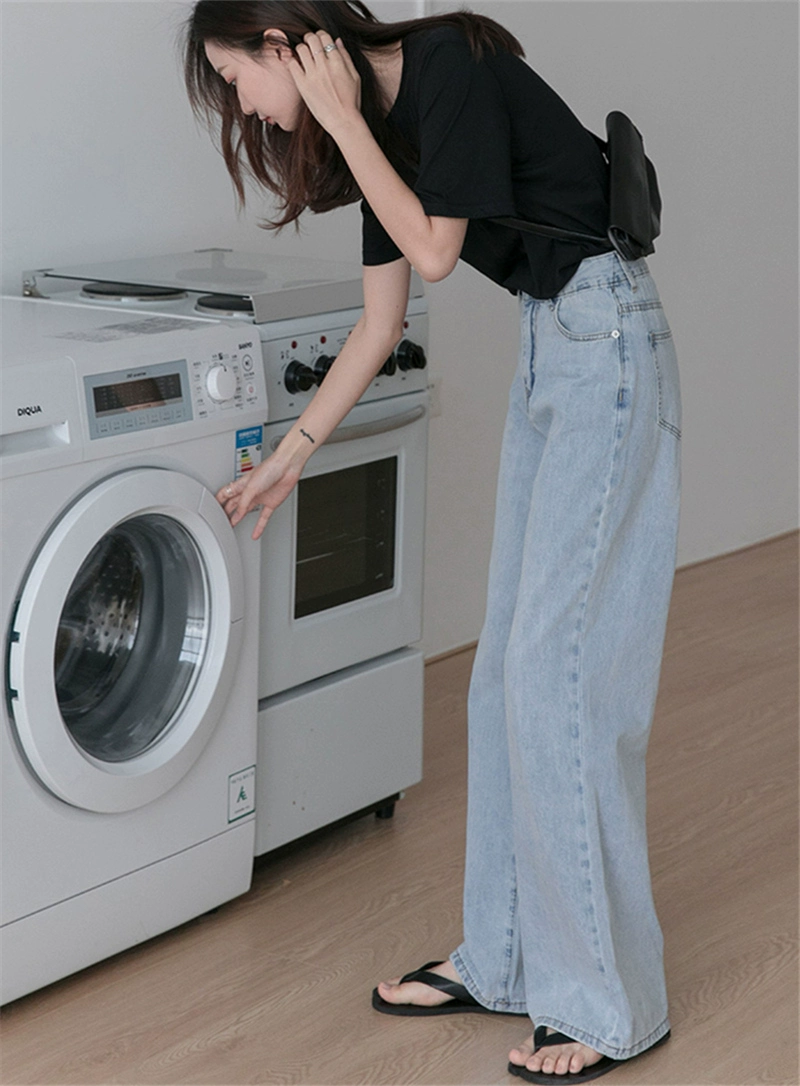 بنطال مستقيم نسائي صيفي واسع الساق على طراز هونج كونج أنيق عالي الخصر