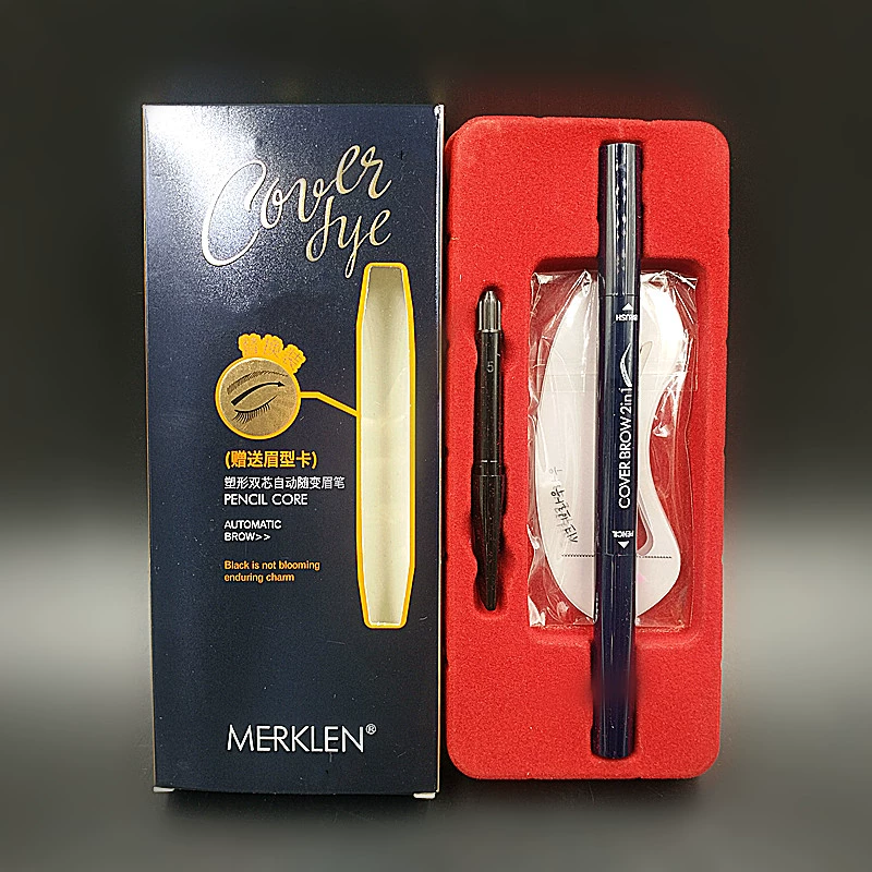 قلم تحديد الحواجب ثنائي النواة من Mercallan، لون القهوة، ذو نهاية مزدوجة، يدوم طويلاً، غير متفتح، بطاقة شكل الحاجب مجانًا