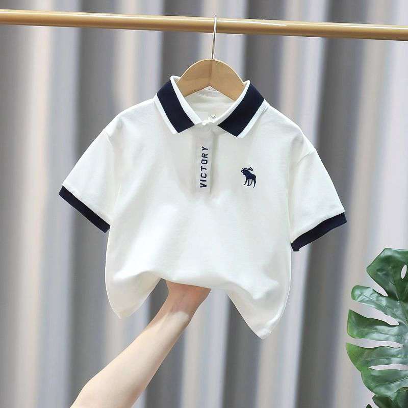 الأولاد قصيرة الأكمام قميص بولو 2024 صيف جديد للأطفال عادية Lel رقيقة تي شيرت منتصف كبير للأطفال نصف كم