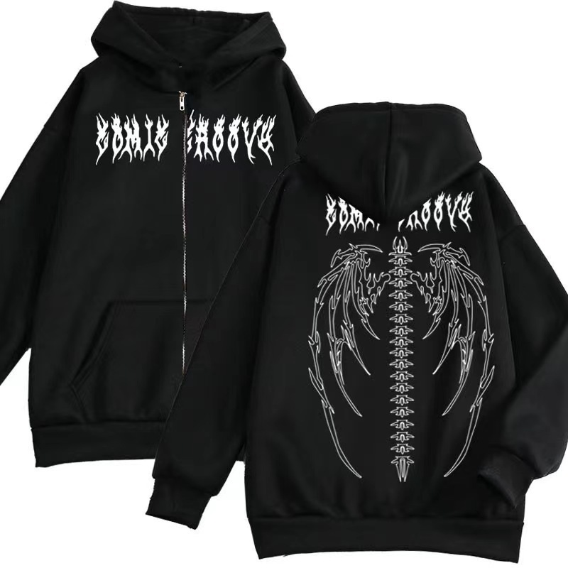 سترة هاراجوكو y2g للسيدات للخريف بقلنسوة وسحاب وطباعة فراشات وأكمام طويلة مع غطاء للرأس مقاس كبير فضفاض