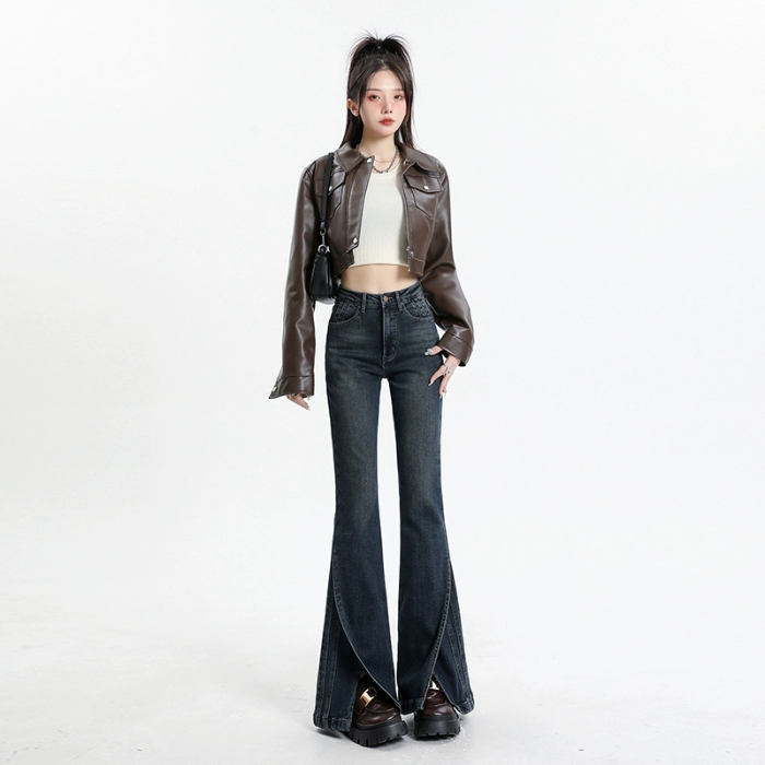 شق الجينز الجينز تصميم الجينز عالي الفرق
