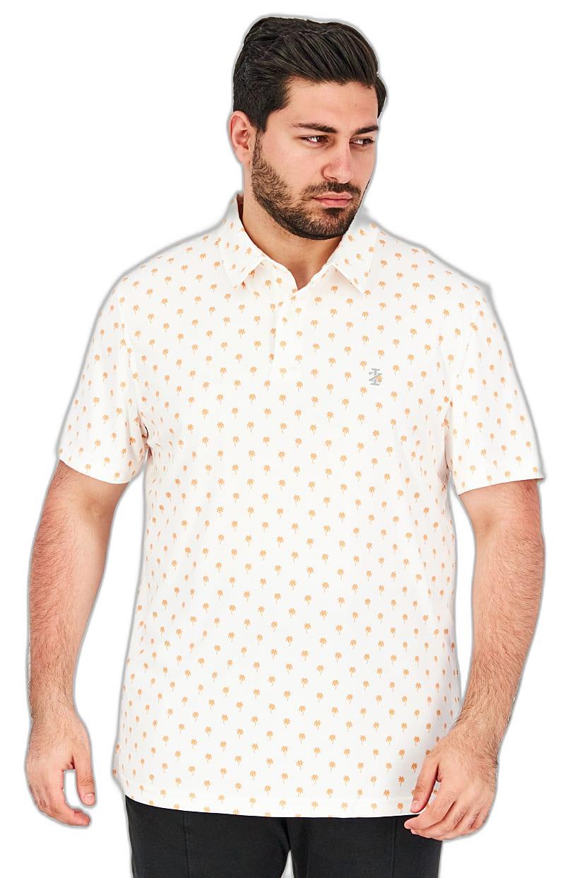قميص بولو أبيض وبرتقالي للملابس الرياضية الرجالية بأكمام قصيرة.