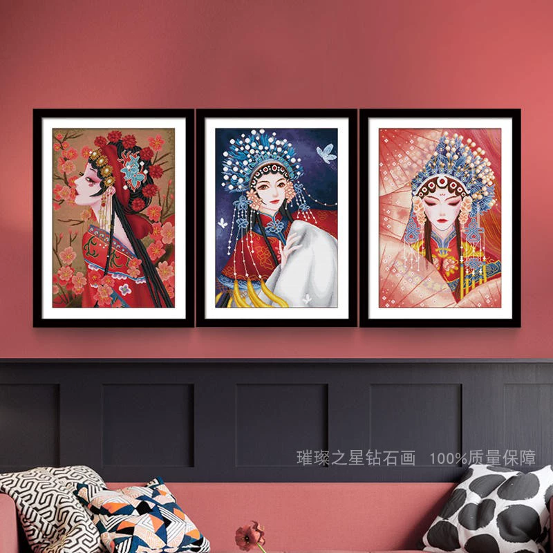 لوحة ماسية 2024 نمط جديد 5d لزجة مليئة بالألماس الطراز القديم هوا دان غرفة المعيشة النمط الصيني أوبرا اليدوية الماس عبر غرزة