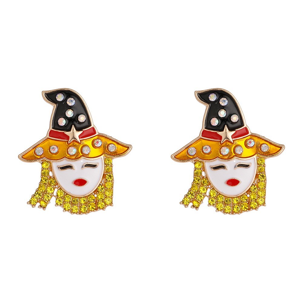 الأمازون قبعة الساحرة أقراط سبيكة يقطر النفط الماس الأقراط هالوين مبالغ فيها الأقراط والمجوهرات عبر الحدود