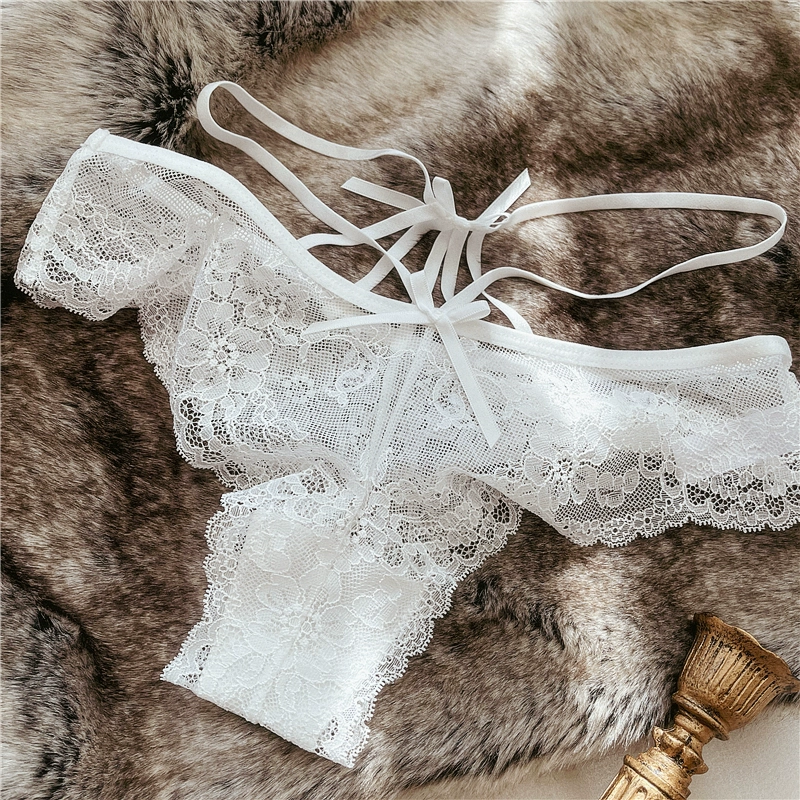 مثير فتاة فائقة الدانتيل سراويل منخفضة الخصر القوس جوف