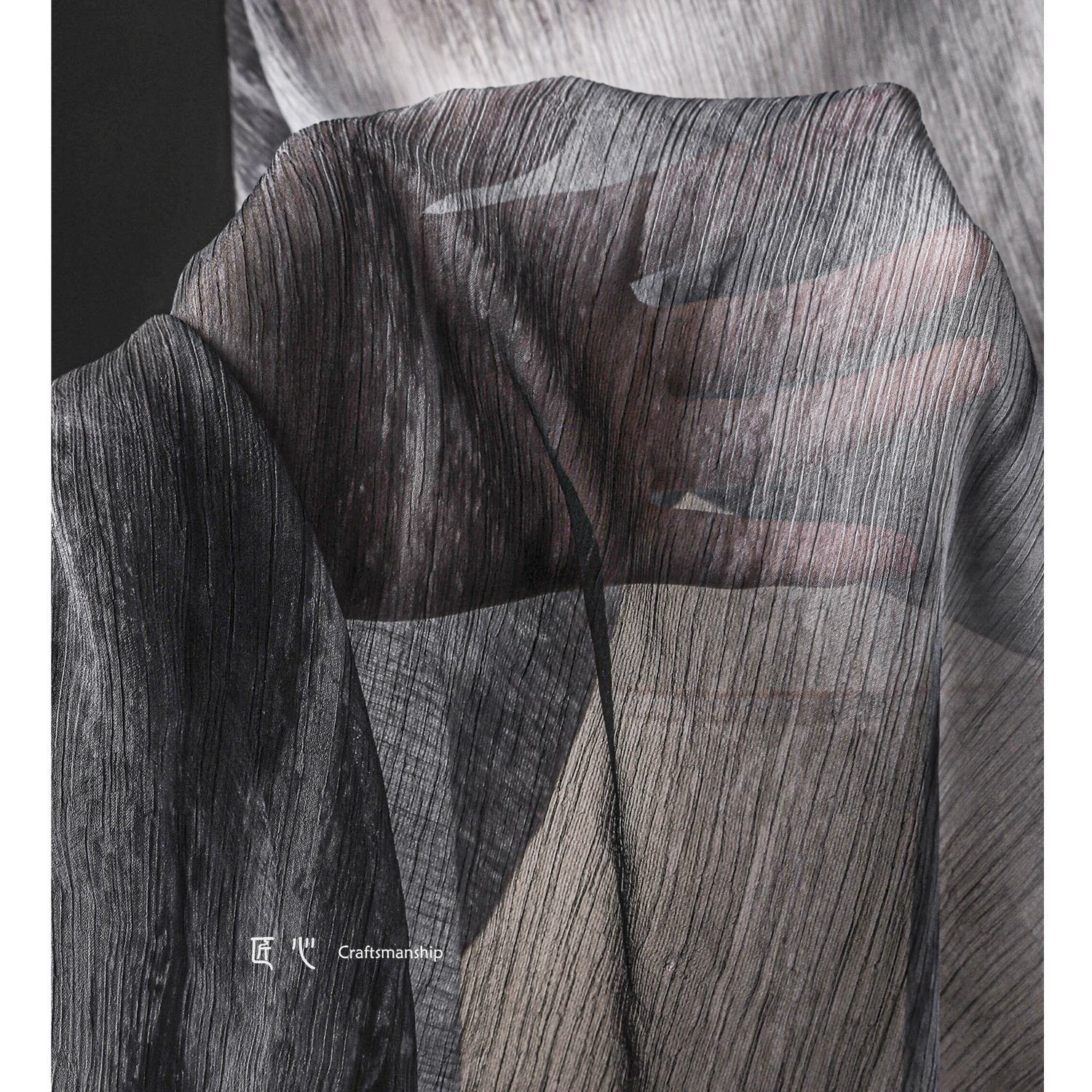 Black -gray التدرج الرقيق الشيفون الحرير الحرير الغزل شاش الصباغة الملمس الشاش الأدب Cardigan تنورة مصمم النسيج