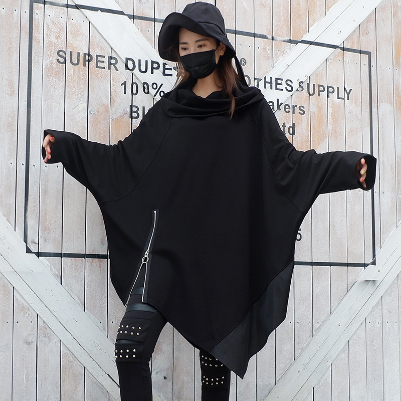 سترة صوفية جديدة لخريف 2024 داكنة وياقة كومة سترة نسائية مخصصة بأكمام طويلة غير منتظمة متوسطة الطول