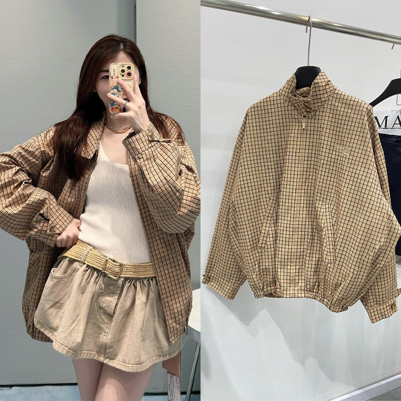 الربيع والصيف 2024 الكاكي منقوشة رسالة عمودي طوق جاكيت زيبرا معطف فضفاض التخسيس المألوف رقيقة للنساء