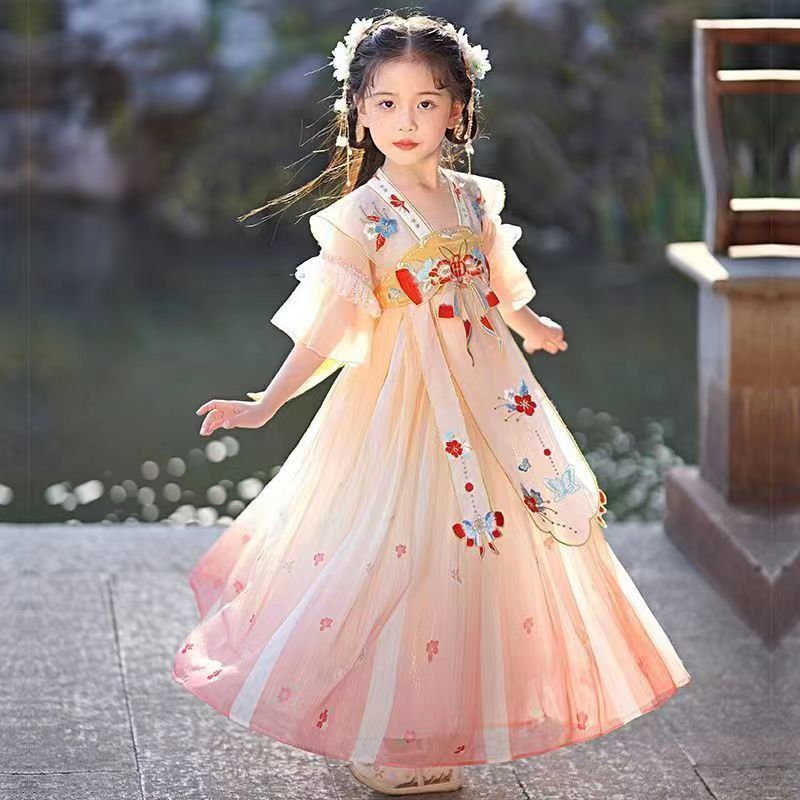 فستان أزياء صيفي قديم للفتيات من Hanfu فستان صيفي للأطفال بدلة تانغ القديمة تنورة أميرة صيفية للفتيات
