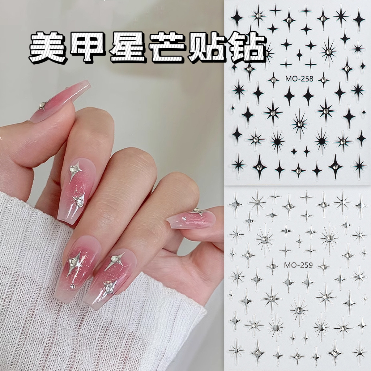 الإنترنت الساخن الساخن نجمة فضية مسمار الفن ملصق الحب الهلال ستار الصليب لاصق مسمار التصحيح الزينة