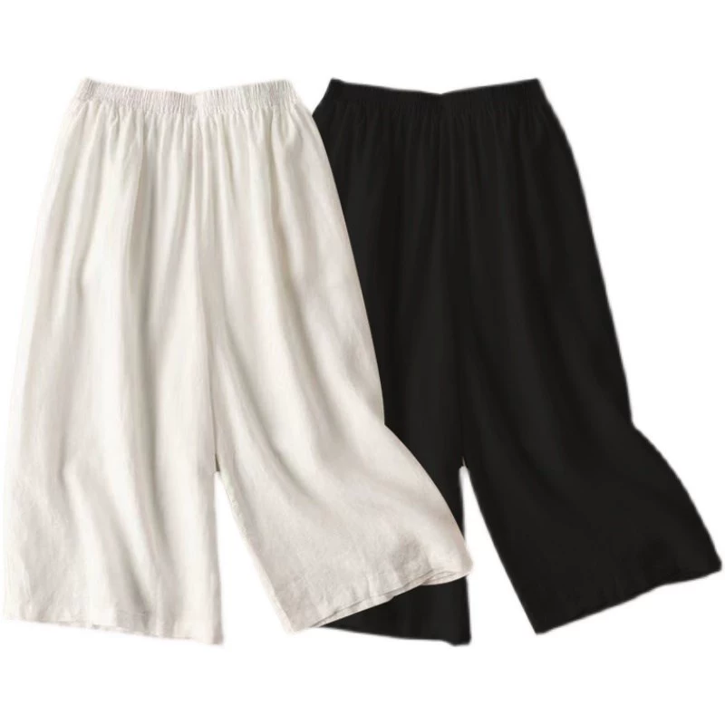 قطعتين من السراويل النسائية الصيفية التخسيسية ذات الأرجل الواسعة من القطن الخالص