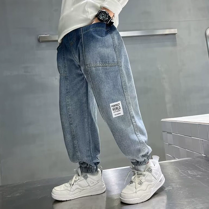 سراويل ولادي جينز ربيعي وخريفي ملابس ربيعية 2024 سراويل أطفال جديدة سراويل أطفال متوسطة وكبيرة النسخة الكورية فضفاضة وعصرية