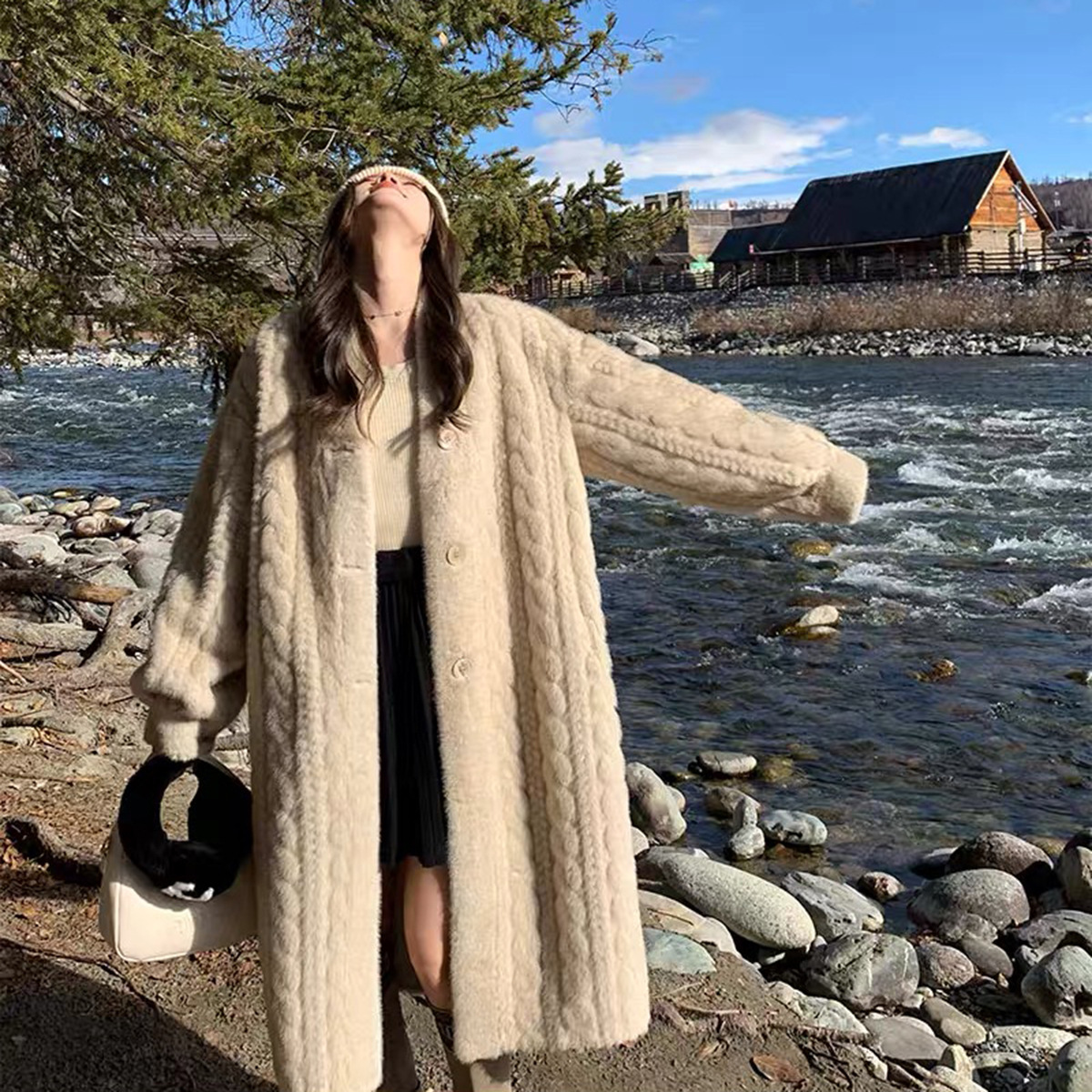 معطف طويل أنيق من فرو المنك الذهبي للنساء من المصنع متوفر في المخزون 2024 ربيع 2024 جديد صديق للبيئة من الفرو الصناعي