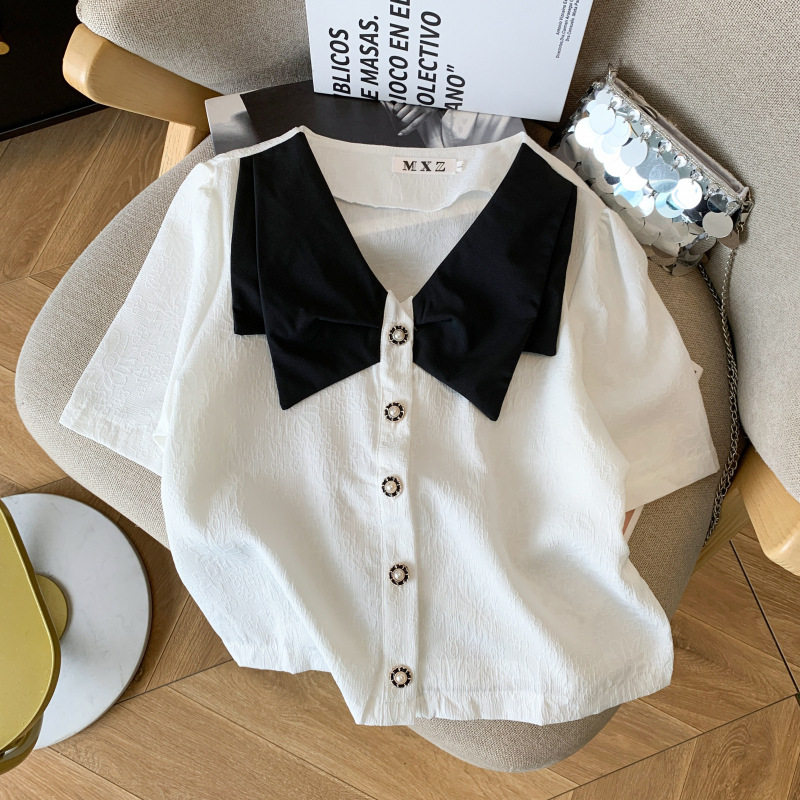 لقطة حقيقية في المخزون قميص صيفي جديد بياقة الدمية أناقة لتقليل العمر فقاعة بأكمام قصيرة تصميم Sense Niche مناسب لجميع المناسبات بأكمام قصيرة