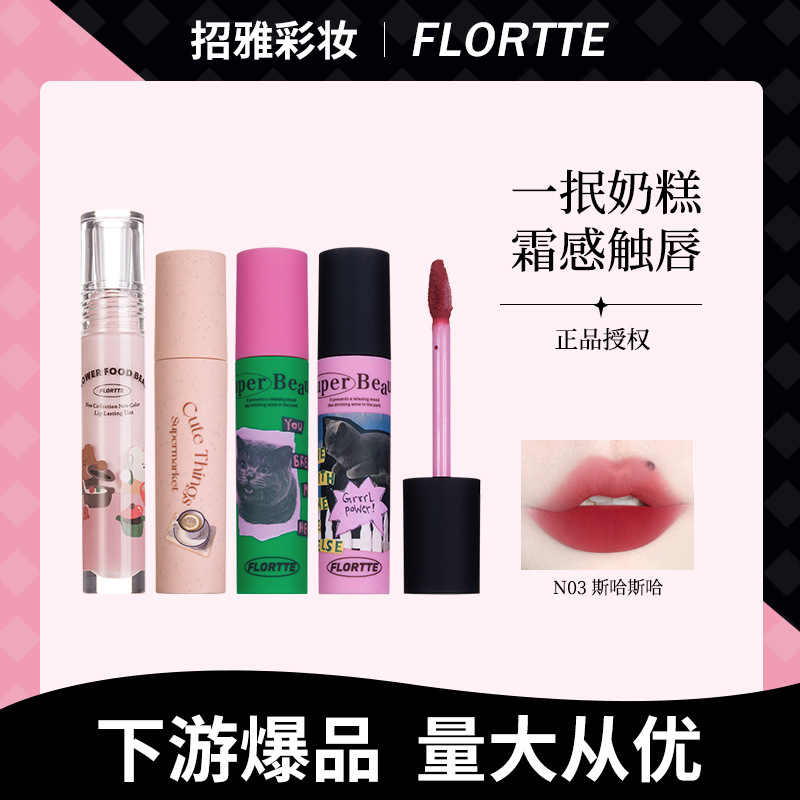 [شحن مجاني] كريم الشفاه فلورتي/زهرة لوليا غريب ميريا كريم الشفاه بكعكة الحليب ليس من السهل لصقه كوب طلاء الشفاه رخيص الثمن