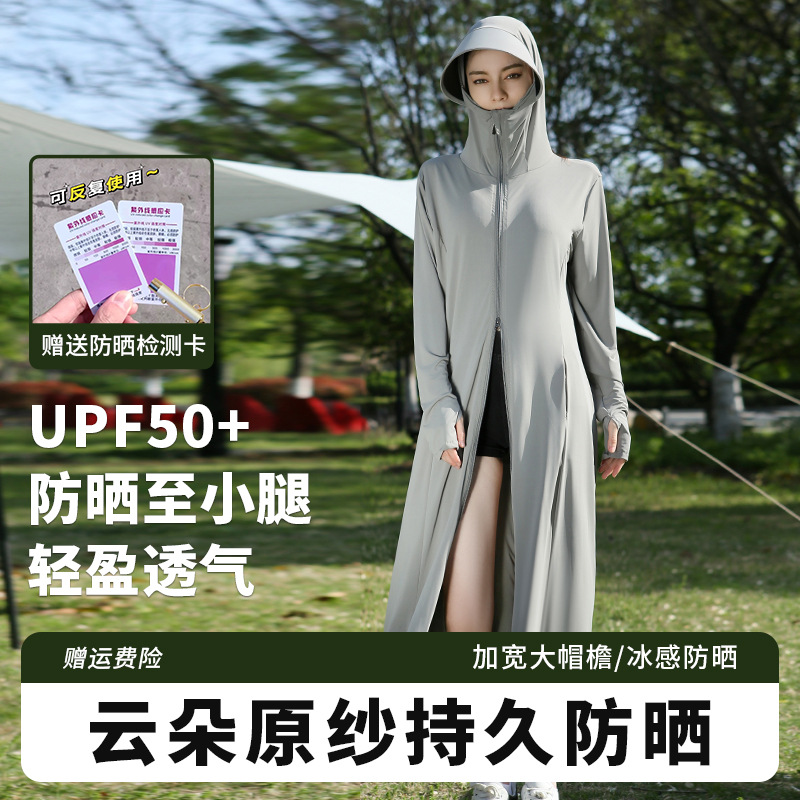 ملابس طويلة واقية من الشمس للنساء مضادة للأشعة فوق البنفسجية من التيتانيوم الجليدي الأصلي غزل الحرير الجليدي معطف رائع فضفاض قابل للتنفس ملابس واقية من الشمس لكامل الجسم