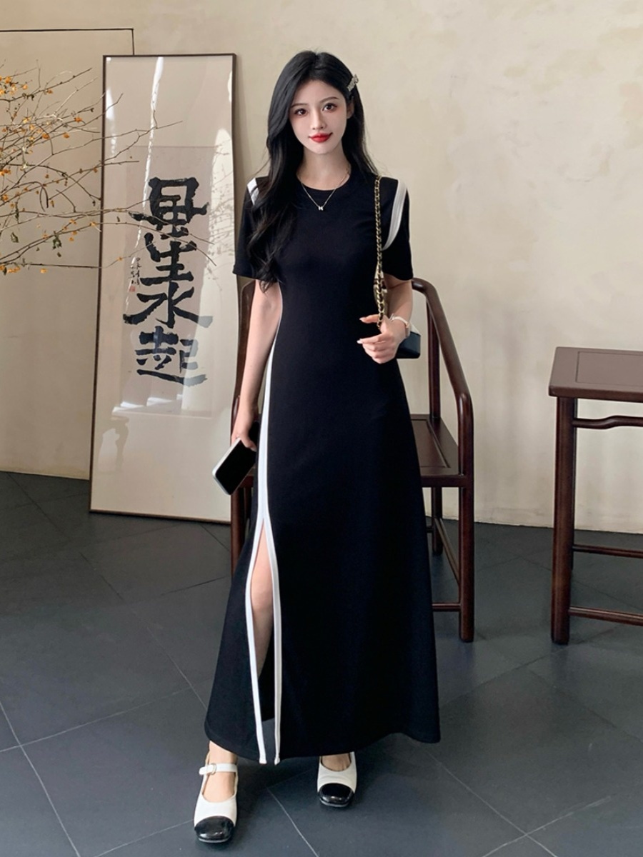 فستان صيفي بأكمام قصيرة وألوان متباينة للفتيات البدينات