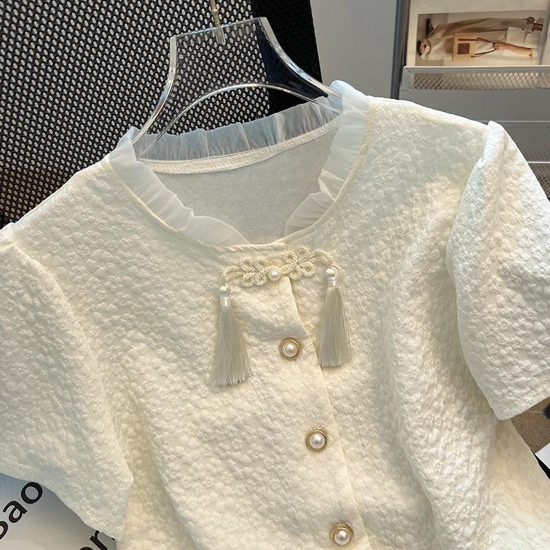 قميص شيفون جاكار جديد على الطراز الصيني، تصميم متخصص، بقصة ضيقة، وياقة أذن قصيرة للنساء