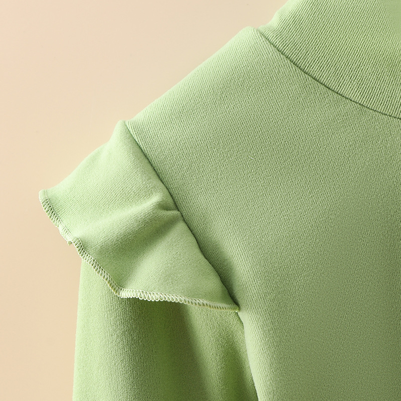 قميص سفلي للأطفال من New de Velvet للخريف والشتاء، نصف ياقة مدورة وأكمام مكشكشة على الطراز الغربي، ملابس خريف دافئة للفتيات متوسطة وكبيرة تناسب الجميع