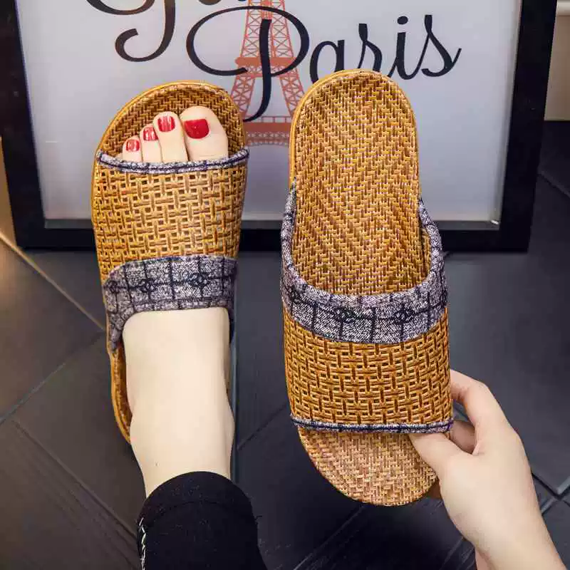 شبشب منزلي منسوج ونعل مسطح وخفيف الوزن على الطراز الأوروبي