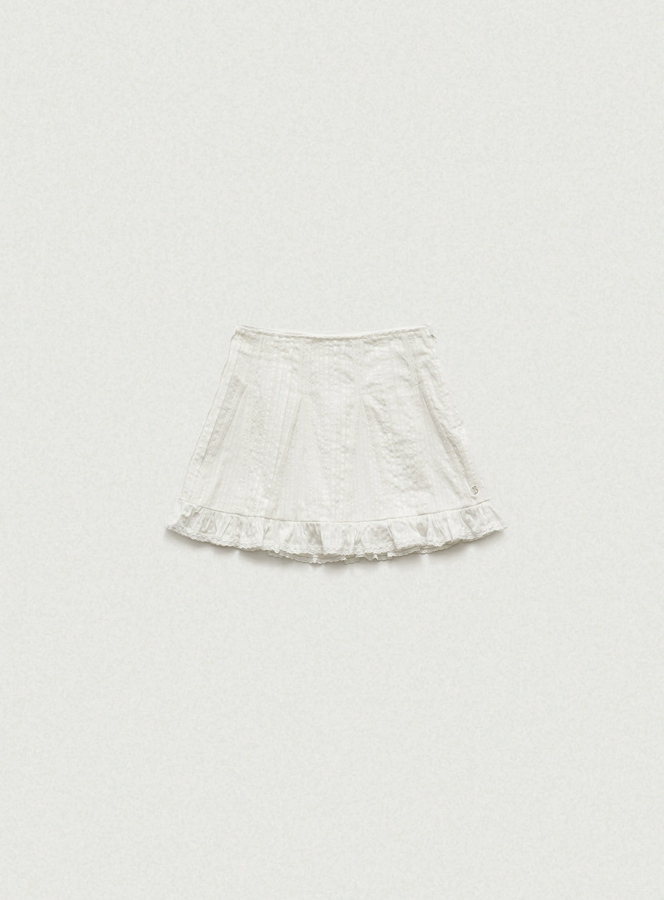 بقعة مطوية عاجلة الخصر من الدانتيل أبيض تنورة A-LINE