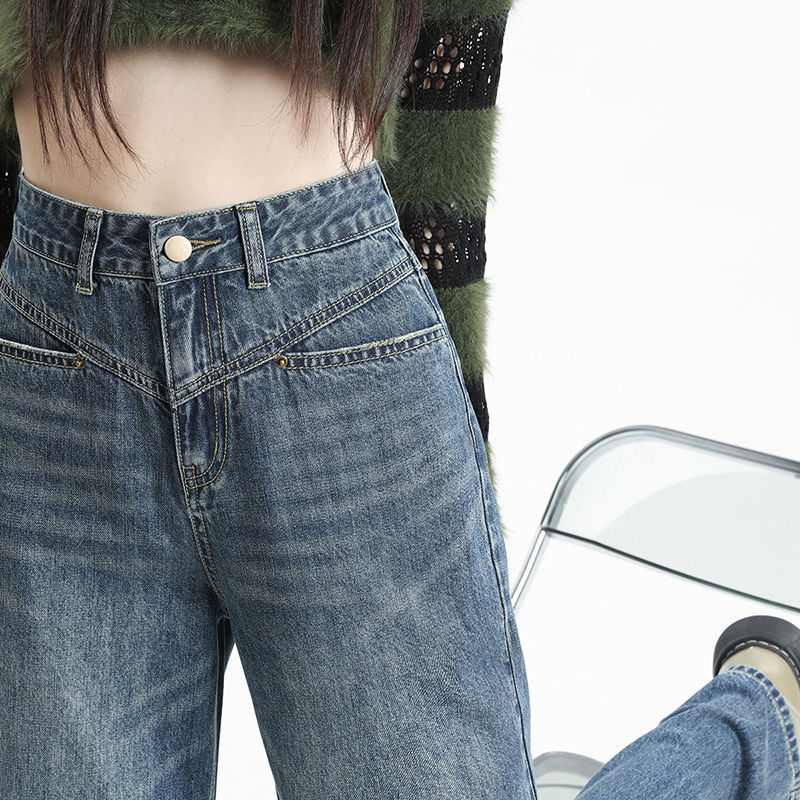 جينز نسائي عتيق واسع الساق فضفاض للتخسيس الكل مباراة 2024 أوائل الربيع سراويل جديدة نسائية مستقيمة غير رسمية سراويل توري