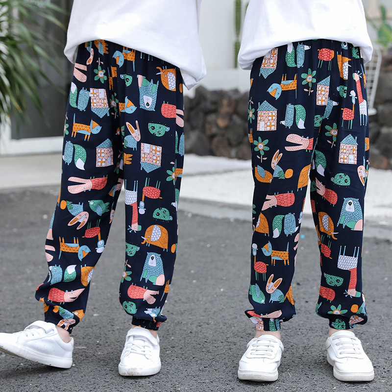 24 سراويل صيفية رفيعة من القطن والحرير مجمعة للقدم مضادة للبعوض سراويل كاجوال فضفاضة للأولاد والبنات سراويل بيجامة منزلية للأطفال وتكييف الهواء