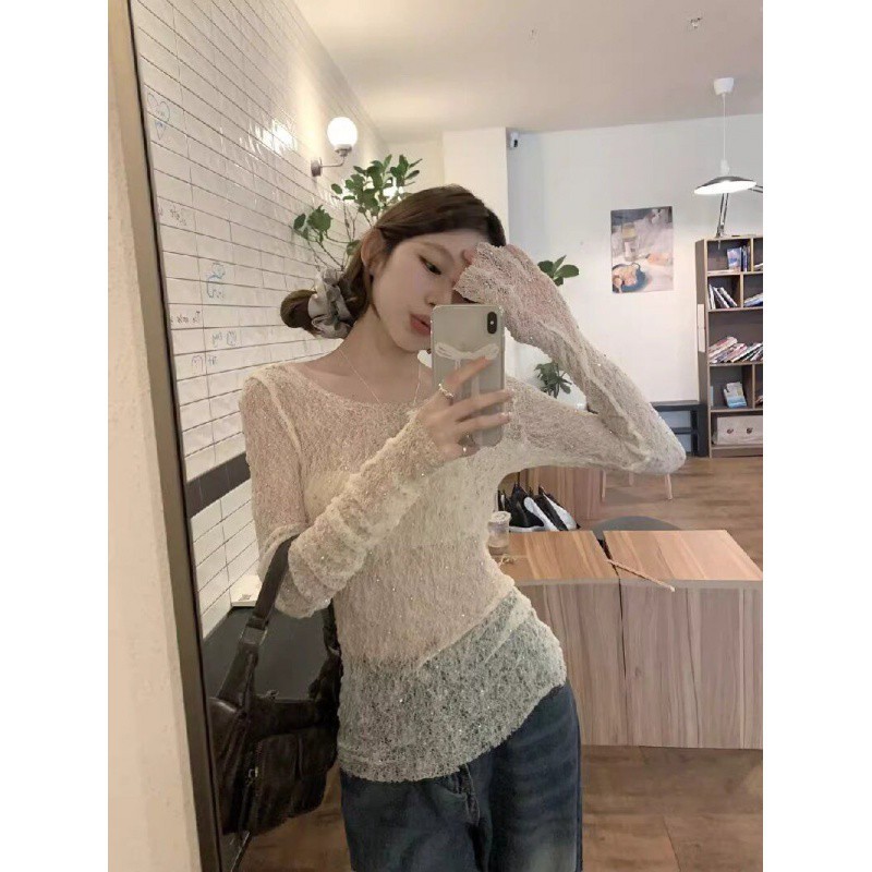 الصناعة الثقيلة الفرنسية الماس منظور الدانتيل قميص المرأة الصيف النقي مثير سليم صالح بلوزة جوفاء الأعلى