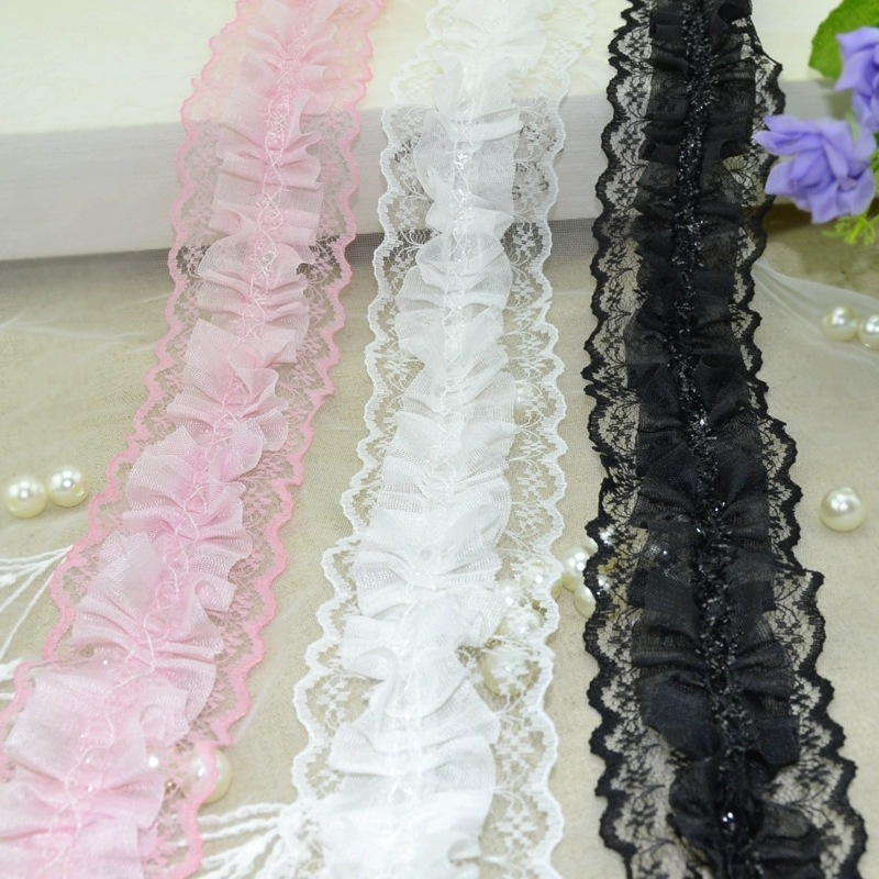 DIY مزدوج الطبقة الدانتيل أبيض مسحوق أسود 5 سم الشيفون عريض الشيفون على الوجهين دانتيل مساعد البرج تنورة تنورة