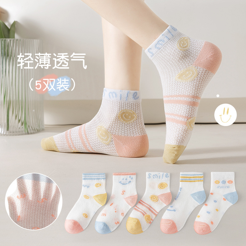 جوارب أطفال للربيع والصيف رقيقة على الطراز الكوري وجه مبتسم بلون سادة جوارب قطنية شبكية تسمح بمرور الهواء للأطفال جوارب أطفال عصرية للرجال والنساء