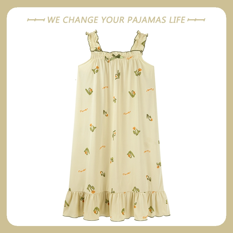 بيجامات مخملية في القطب الشمالي للنساء في الصيف رفيع حجم كبير حجم فتاة لطيف تعليق القطن ثوب نوم ربيع وصيف الملابس المنزلية