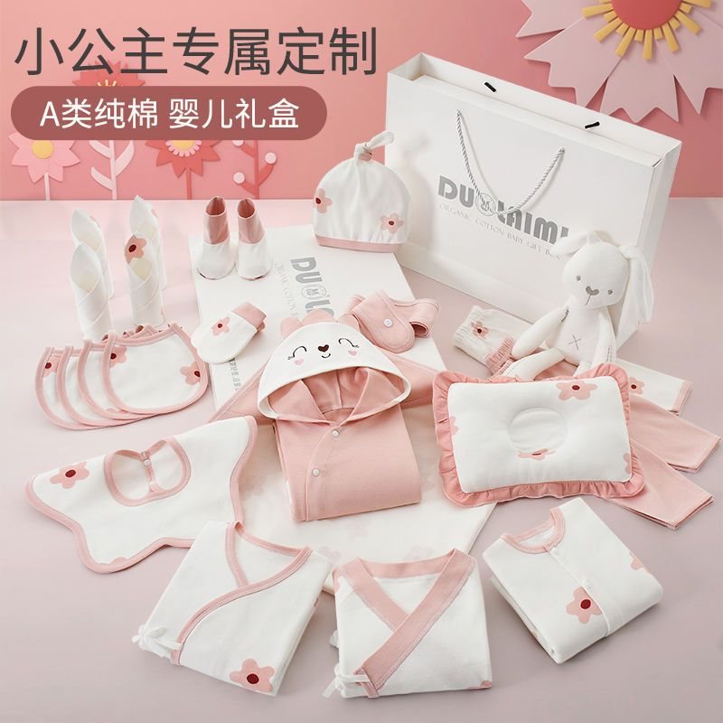 صندوق هدايا لحديثي الولادة طقم ملابس أطفال بدلة صيفية لحديثي الولادة طفلة هدية اجتماع البدر