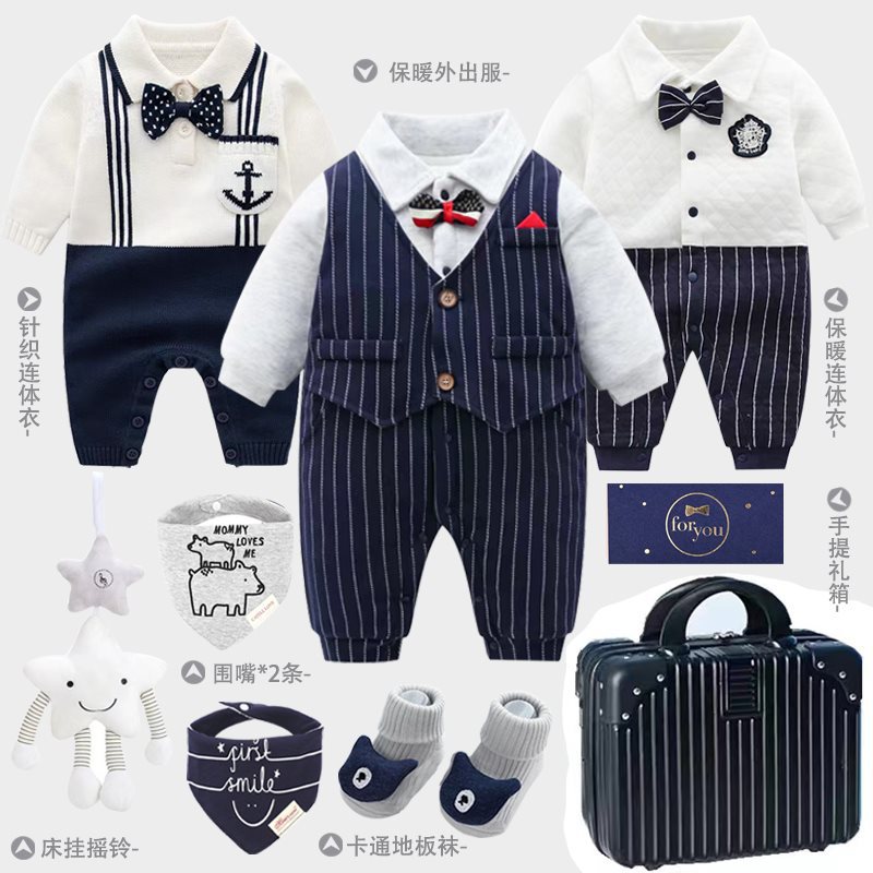 صندوق هدايا للأطفال حديثي الولادة للأولاد، هدايا اجتماع الأطفال حديثي الولادة، ملابس الخريف والشتاء تناسب هدايا البدر الراقية للرجال لمدة عام واحد