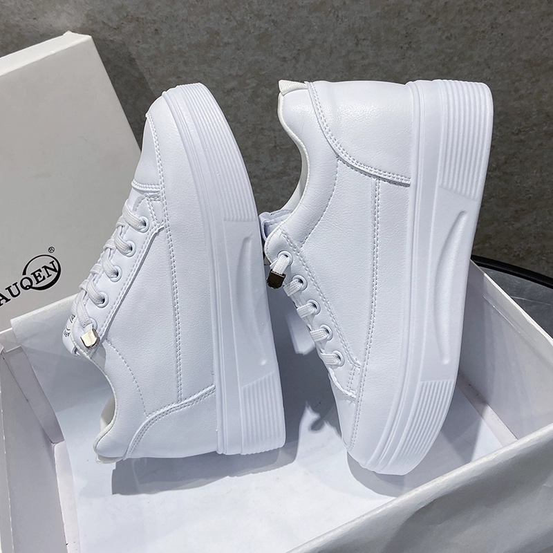 أحذية جلدية صغيرة بيضاء الإناث 2024 الصيف أحذية جديدة متعددة الاستخدامات وأحذية الصفائح غير الرسمية في الخريف في باطن سميكة للأحذية النسائية