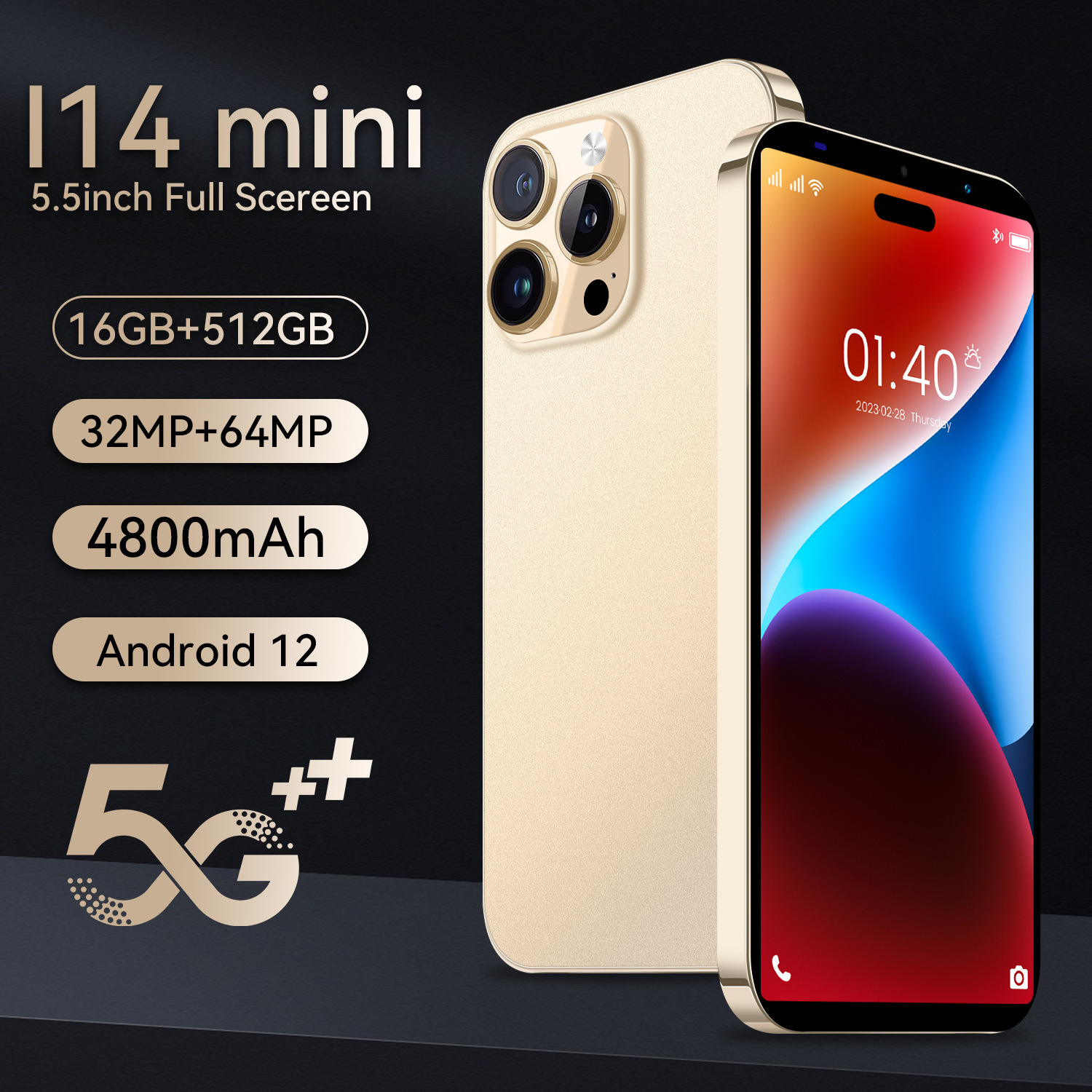 هاتف محمول جديد عبر الحدود لعام 2023 i14 صغير بشاشة 5.5 بوصة يعمل بنظام أندرويد هاتف ذكي 512 + 4G جيل أوزون ساخن