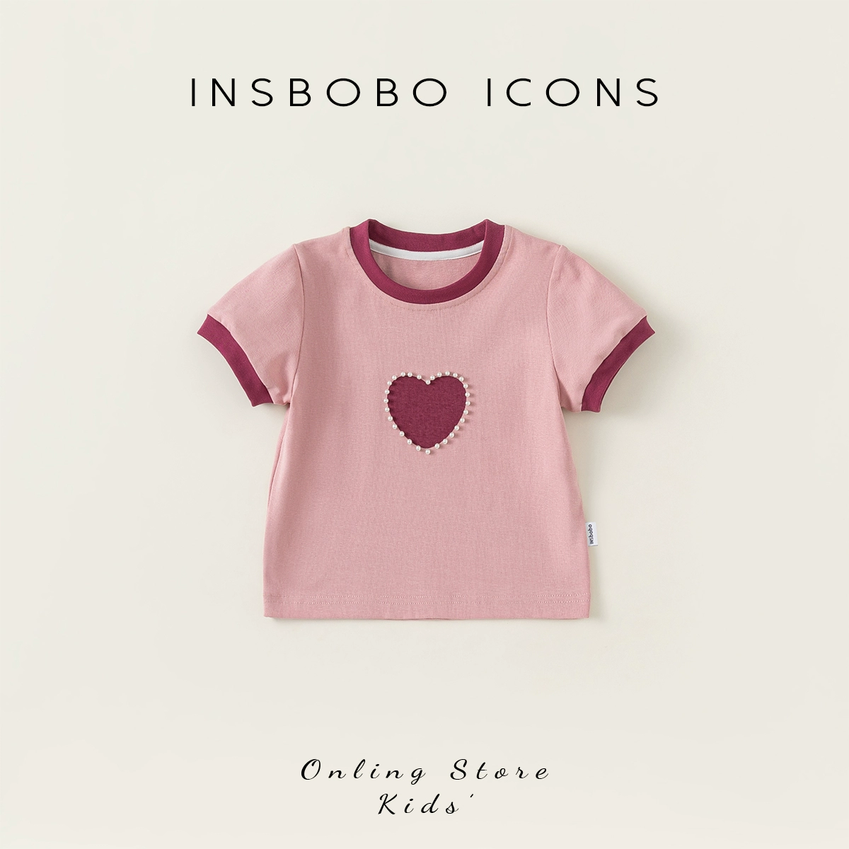 insbobo فتاة قصيرة -sleeved t -shirt 2025 جديدة الصيف ملابس الأطفال t -shirt sweet top girl