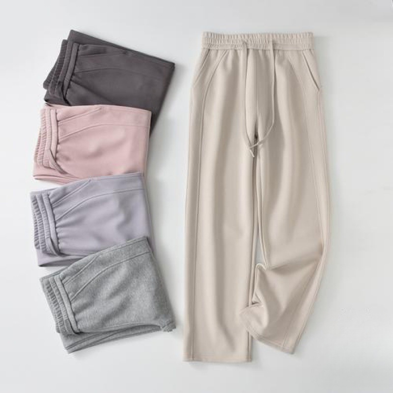 مطوي عادية واسعة الساق السراويل 2024 الربيع الكورية نمط الملمس ثنى عالية الخصر التخسيس فضفاض مستقيم بنطلون للنساء
