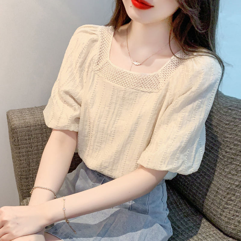 2024 صيف جديد نمط الشيفون قميص أنيق الحلو النمط الفرنسي قميص صغير المرأة قصيرة الأكمام الشيفون الأعلى المرأة البطن تغطي التخسيس