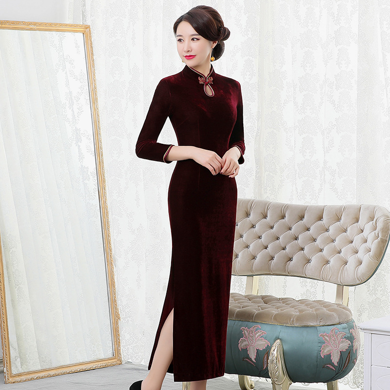 الأمهات في منتصف العمر وكبار السن الأمهات الجديدة المخملية الذهبية شيونغسام طويلة الأكمام سبع نقاط المصنعين سليم الرجعية تحسين